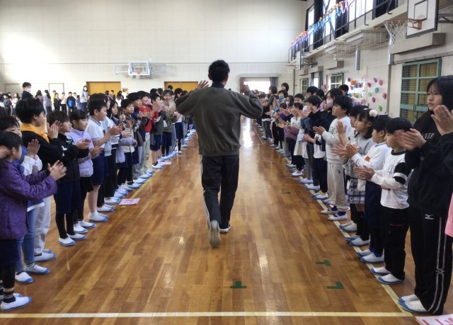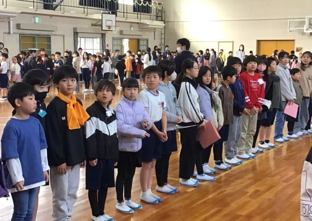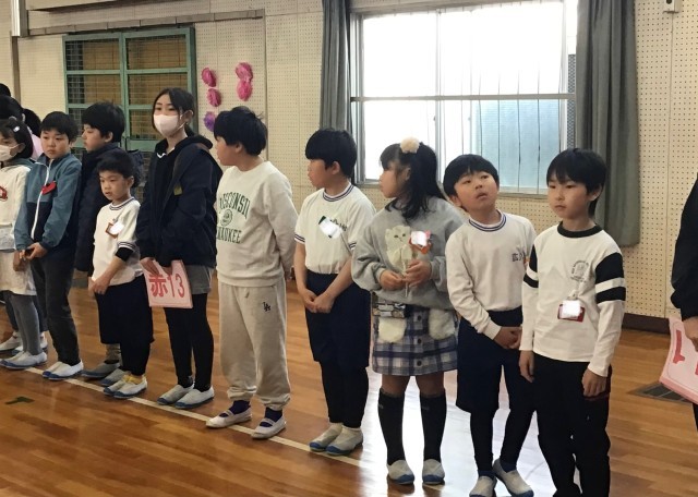 トロロ班ごとに集まる場所を確認したのち、6年生が退場するときの隊形を作りました。