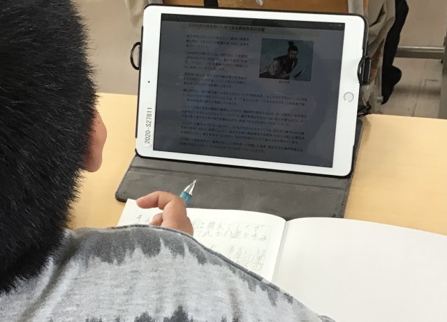 6年2組さん、社会の授業で今年1年かけて学んだ歴史上の人物や制度など、自分が調べたいものを決めて、取り組んでみようという授業をしていました。
