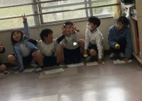 7組さんの廊下の掲示物をはるところに、以前学校に走り方教室で来てくださった「かな先生」の色紙を協力して貼っていました。