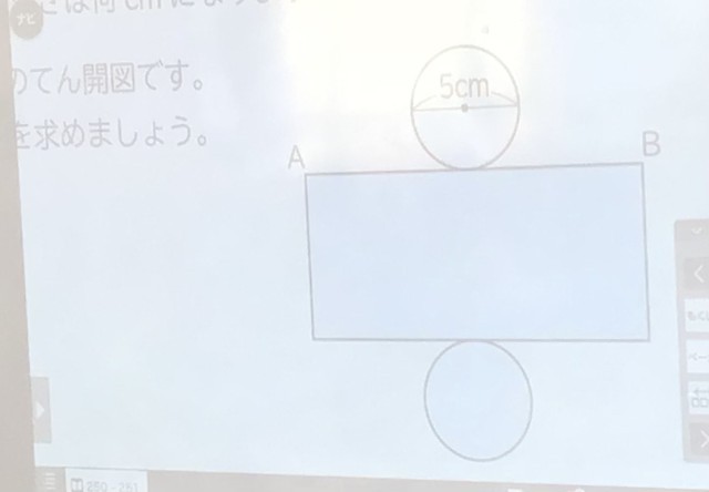 「円柱の展開図があります。円の直径は5cmです。ABを結ぶ直線はどうやって計算しますか?」