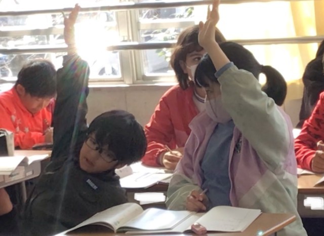 できたら手を挙げて、答えや式を確認してもらいます。