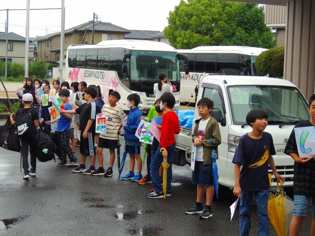 6年生を中心に学校に残るみんなでお見送りをしました。