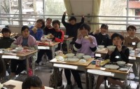 3人グループの班を作って、算数の練習問題に挑戦中の4年1組さん。