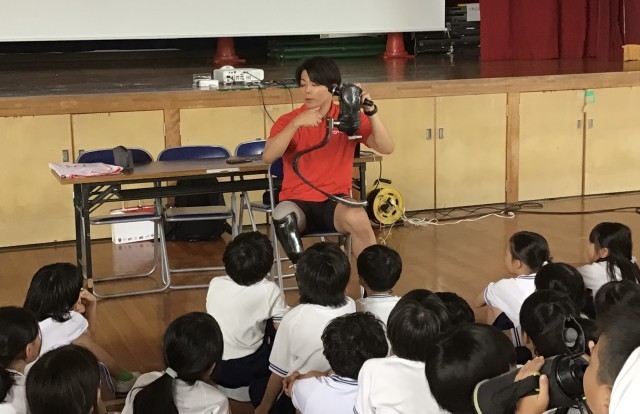 パラアスリートの方から学ぶ会を体育館で行いました。