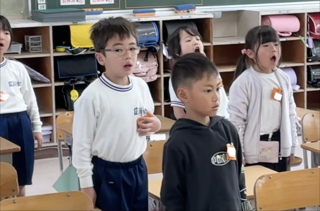 2年1組さん、とっても元気な朝の挨拶をしている様子です。