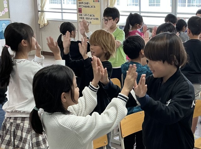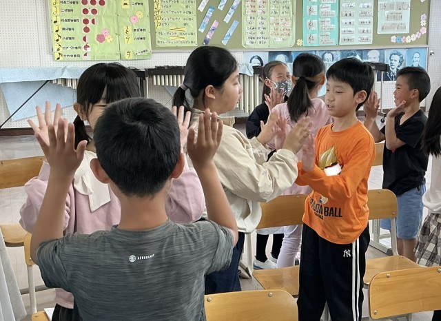 途中からペアの子と手を叩き合ってリズムをとっていました。