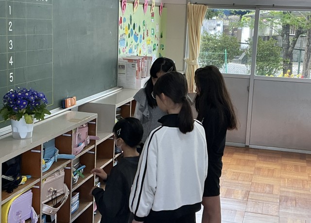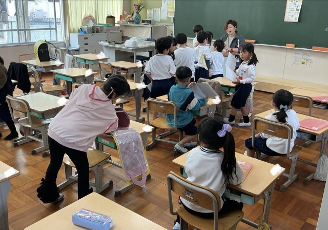 1組さんも2組さんも、1年生の教室には6年生の子たちが数人、朝の片付けなどのお手伝いに来てくれていました。