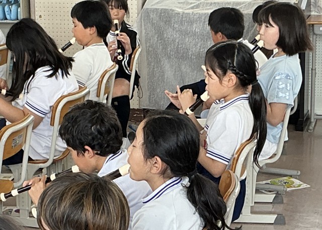 4年2組さん、音楽の授業でリコーダーの練習中でした。