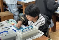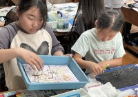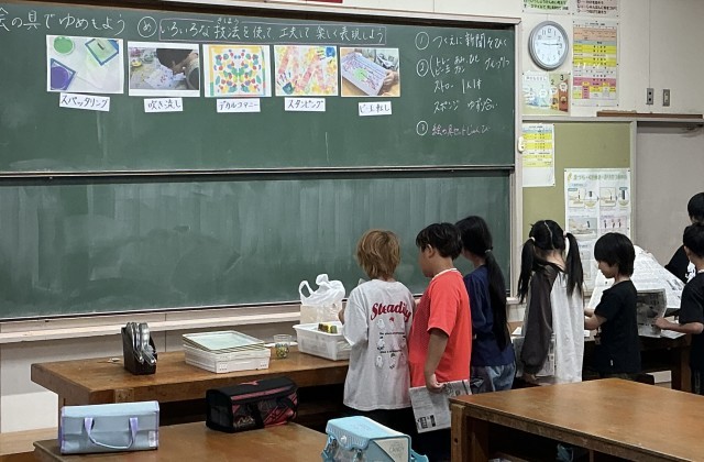今日は「いろいろな技法を使って、工夫して楽しく表現しよう」の授業です。