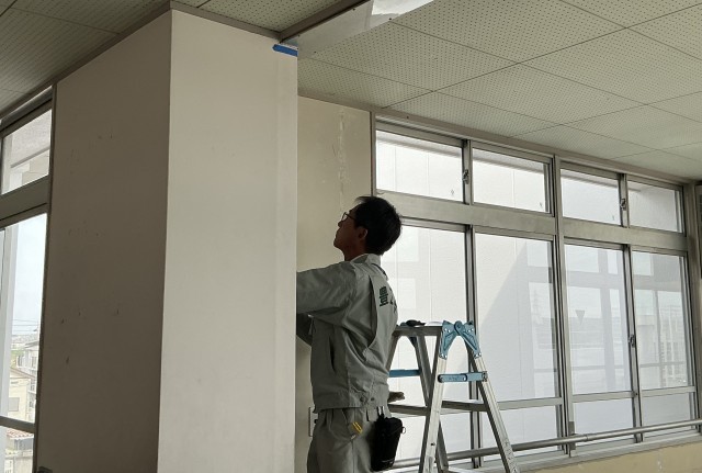 校内をいろいろ確認していると、校舎のシーリングがなくなっている(とれかかっている)所がありました。