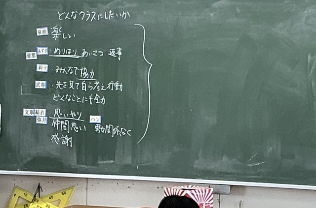 6年2組さん、学活で「どんなクラスにしたいか?」を考えていました。