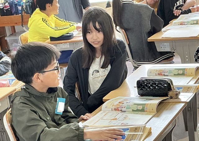 隣の席の子と英語で話す練習をしていました。