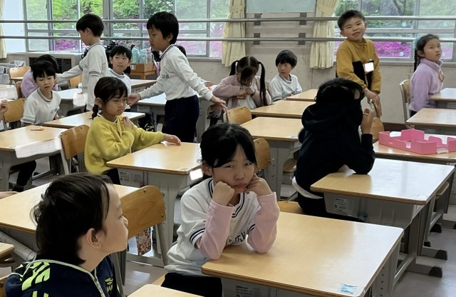 2年1組さんでは日直さんが持ち物チェックをしていました。