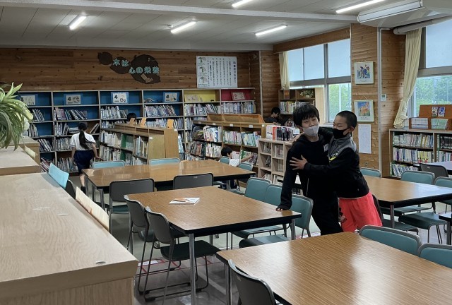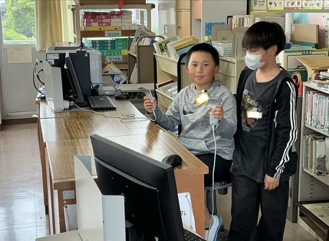 お昼の休み時間に2階のフロアに行くと、図書委員の子が本の貸し出しの準備を、JRC委員の子たちが今朝、集めたペットボトルキャップの集計作業をしてくれていました。