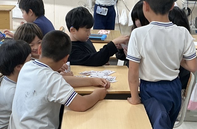 休み時間の様子です 公開日 2026/04/23 更新日 2026/04/23 校長室から 今日は雨なので、外では遊べません。4年2組の教室にも多くの子たちがいました。友達とじゃれ合って遊ぶ子、カードゲームで楽しむ子、みんなにとって休み時間は大切ですね。
