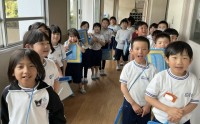 家庭科の授業で、お茶の勉強をする5年1組さん。