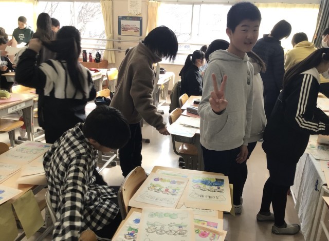 3階にあがってすぐの場所に図工の作品が掲示されていた5年生です。