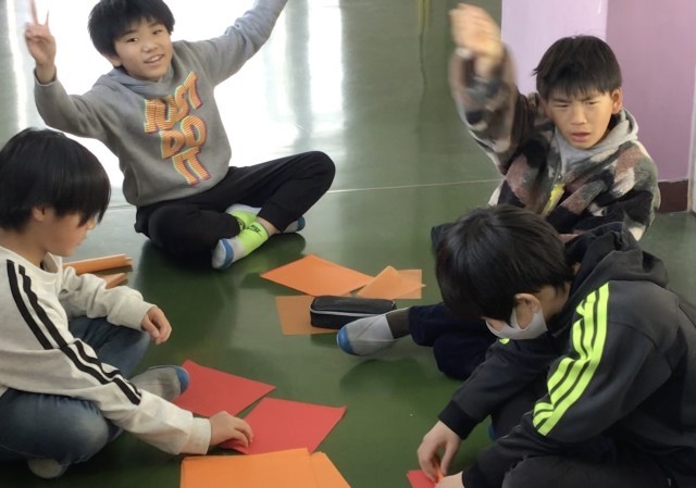 花文字をつくる子たち。