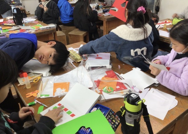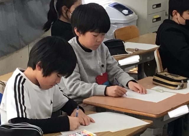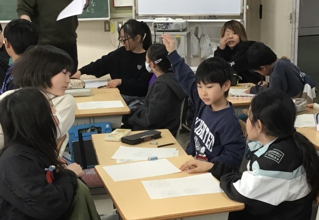 手をあげている子は清書をする!と決めた子たちで先生から画用紙をもらっていました。