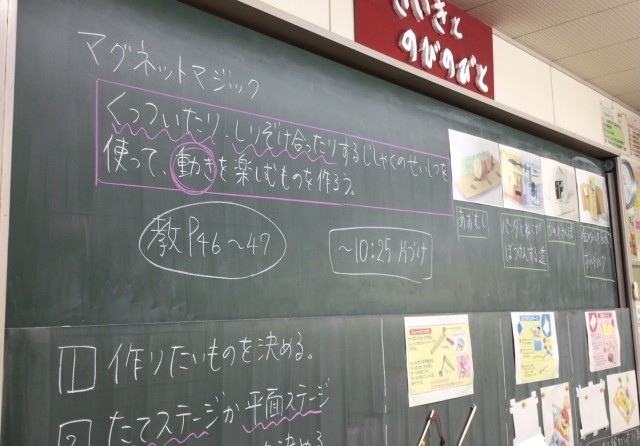 「マグネットマジック」といって、磁石の特性を使って、面白い物を作ってみようという取組をしていました。