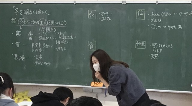 「冬」に行っている生活の工夫を考えて、発表をしています。