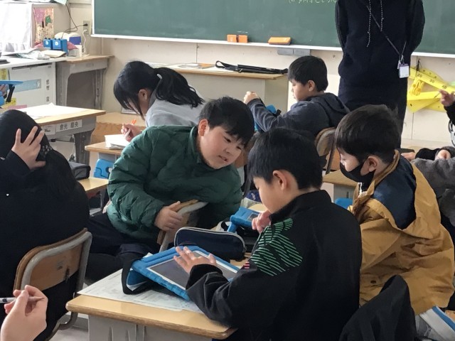 共有したことから疑問に思ったことをタブレットや「豊田」の本を使って調べる時間を先生が取ってくれていました。
