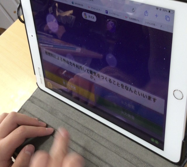 4択問題に次々と挑戦します。みんなが同じ問題に取り組みます。第5位まで順位が出るそうです。