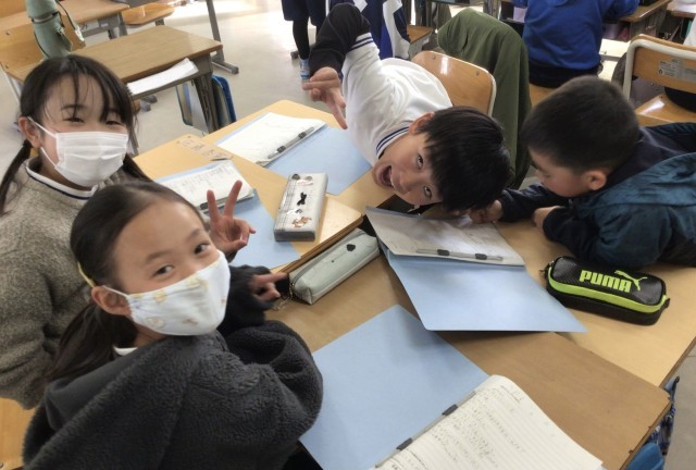 4年2組さん、体験学習を終え、教室に戻ってきました。