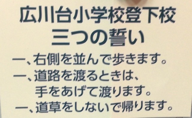 「広川台小学校の登下校3つの誓い」です。