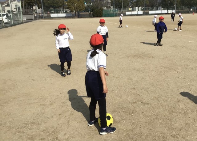 2年生、学年体育でサッカーをしていました。