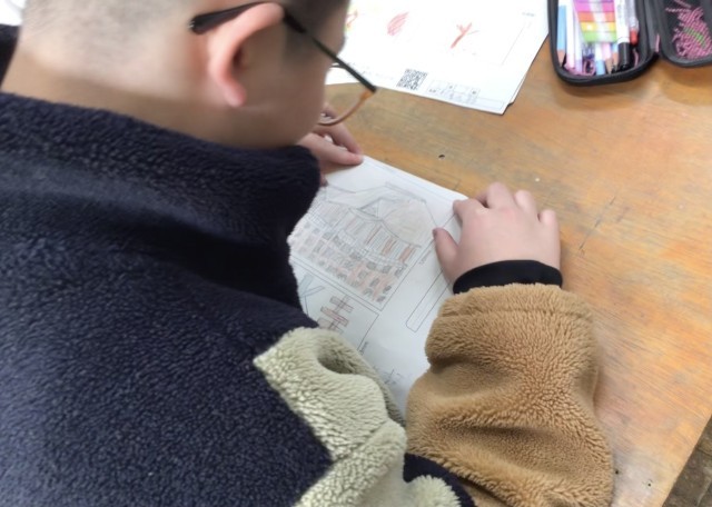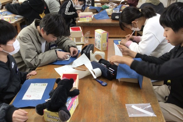 6年2組さん、図工の授業で卒業記念のボックスを作っていました。