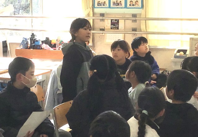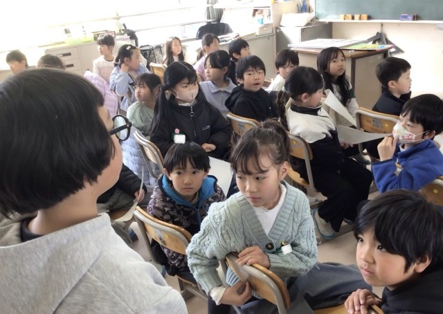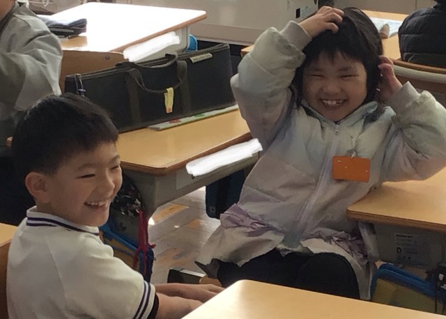先日、3年生、4年生の保護者の方に発表をしたので、今日は最終ということで、1組の子が2組の、2組の子が1組の発表を聴く(体験する)会を行っていました。