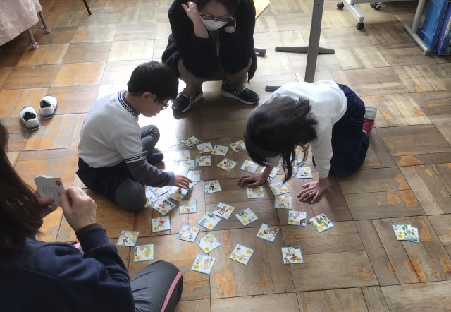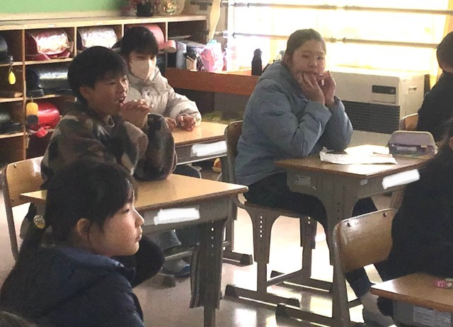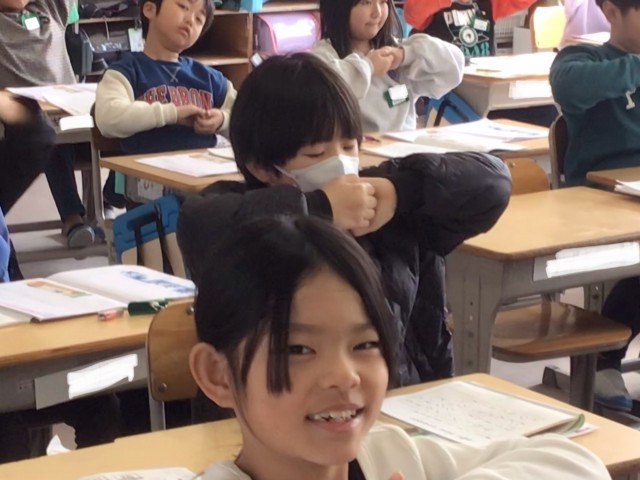 1年生の教室では「だれが来てくれるのかな?」とそわそわしている様子でした。