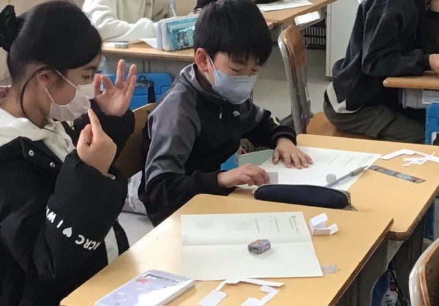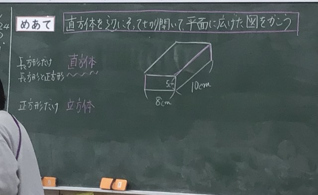 4年生、6時間目は算数で「てんかい図」の勉強をしていました。