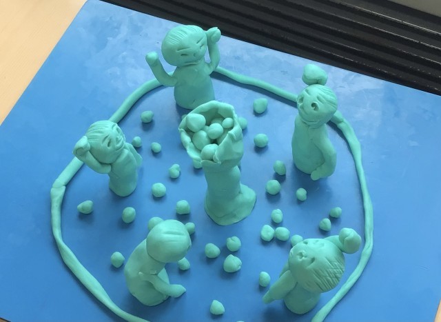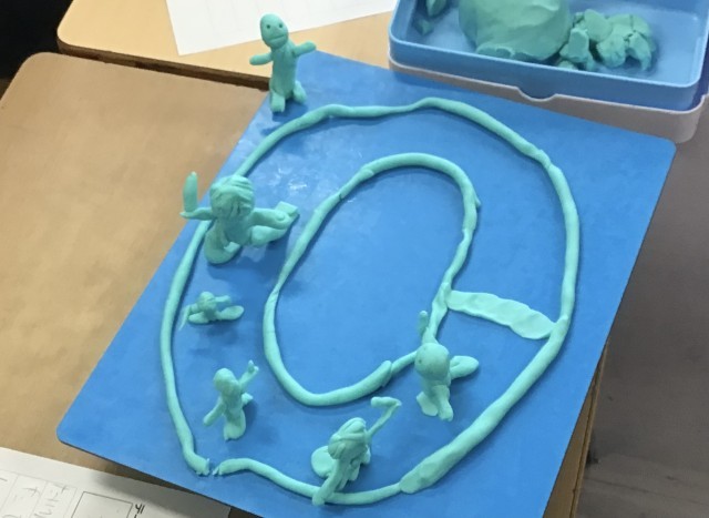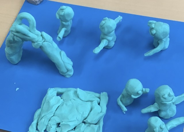その後、粘土を使って、思い出の作品を作ってみます。