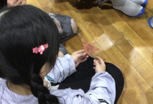 6年生の子たちからも、同じトロロ班の子たちに折り紙で作ったメッセージが渡されました。