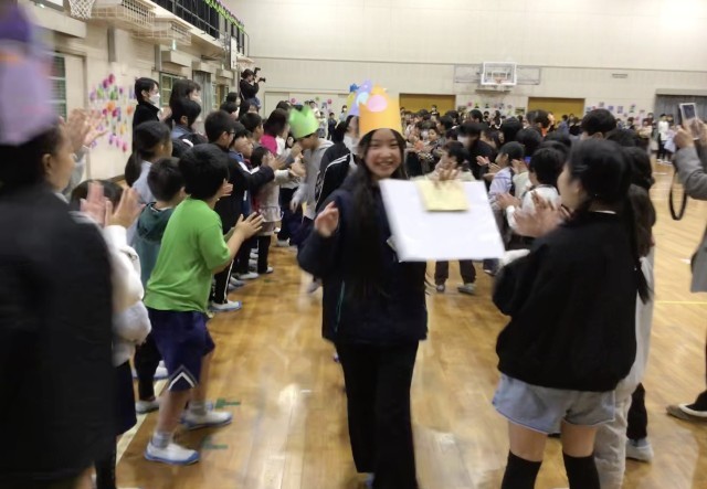 「心に残っていることで、入場してくるときに修学旅行と言っていた子がいたと思うけれど、きっと今日で6年生を送る会が一番心に残ったというと思います。みんな、ありがとう」