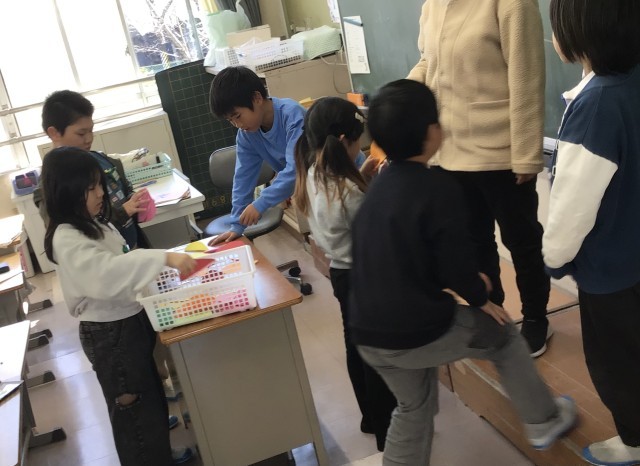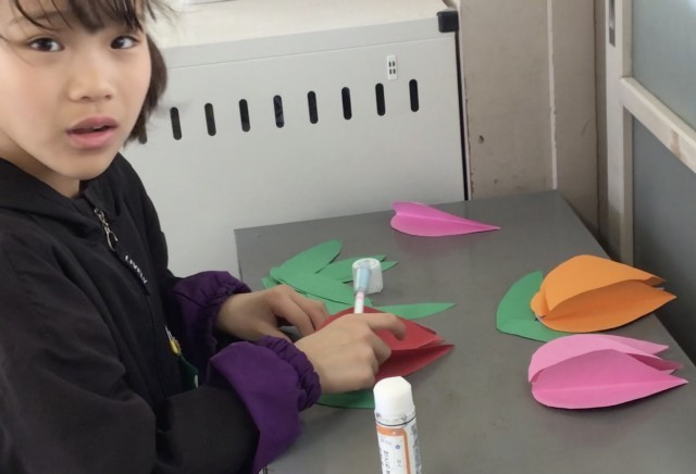 2年生の教室に行くと、なにやらお花を作ってくれています。