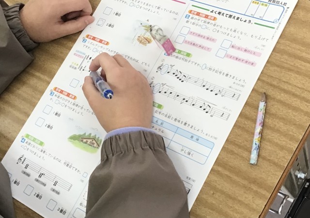 5年2組さんでは、すでに音楽のテストが始まっていました。