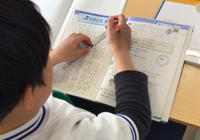 1年2組さん、国語の音読をしていました。