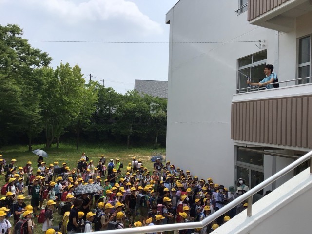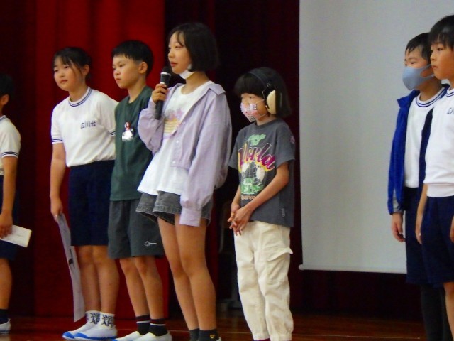 会場には4・5・6年生しかいませんでしたが、オンラインを使って、教室にいた1年生から3年生も会場の様子を参観しました。
