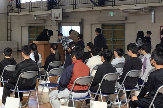 ・環境委員会の子たちによる児童集会の様子です。