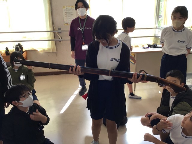 ・火縄銃(レプリカです)も触ってみました(重さ、大きさは本物どおりらしいです)