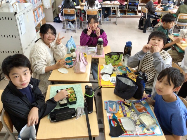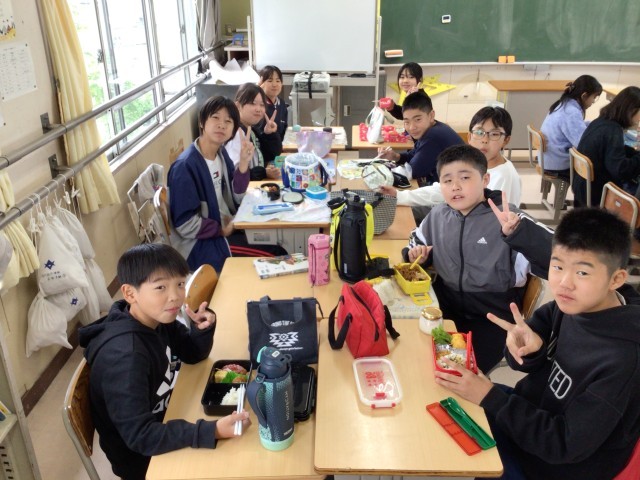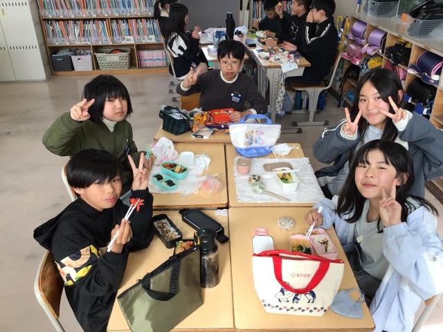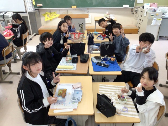 1年2組さんと特別支援学級さんの給食の様子です。