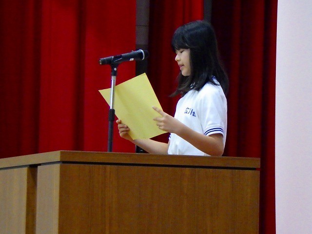 ・後期始業式、あきほさんが6年生代表でスピーチをしました
