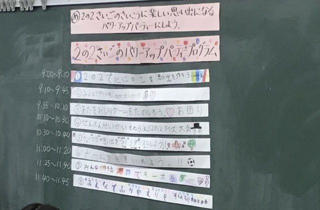 (この最後の学活は、担任の先生と子どもたち、保護者の方の時間なので極力顔を出さないようにしています。写真からの推測です)