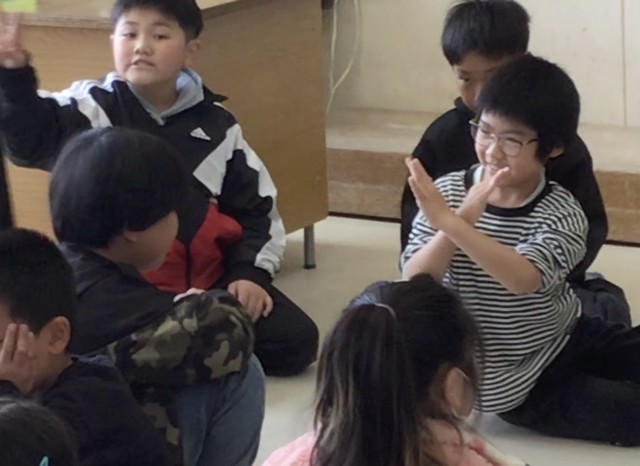 ことばを使ってはいけないので、すべてジェスチャーです。