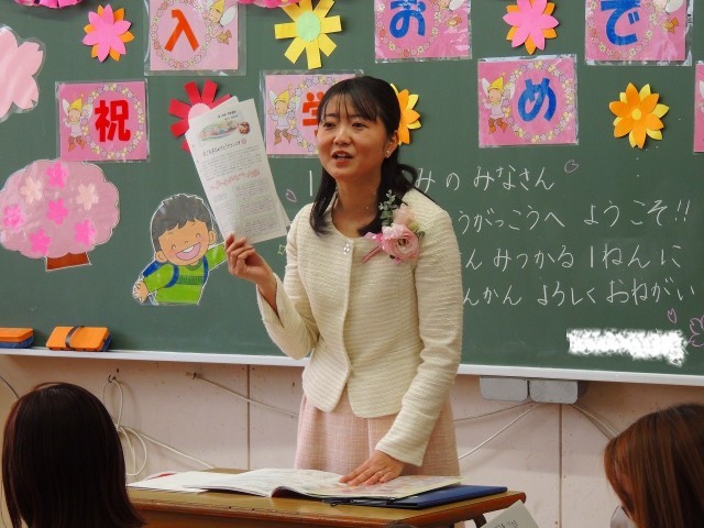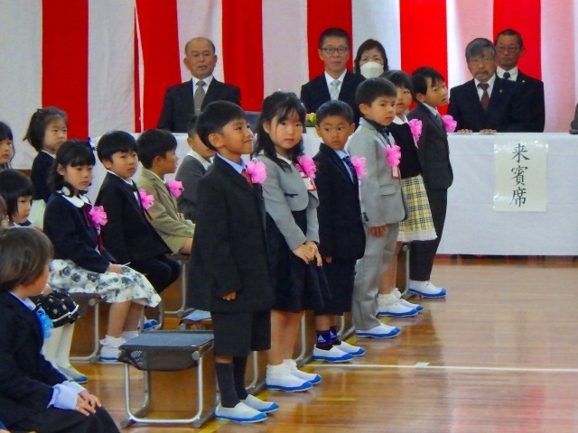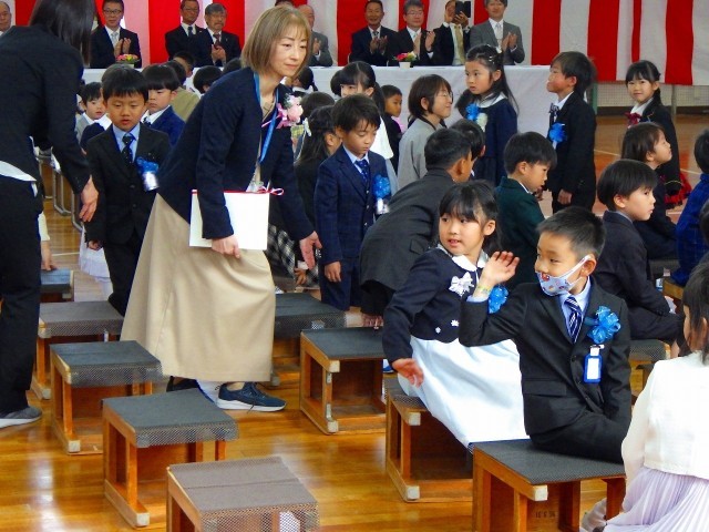1年生のみんな、入学式を終えて、教室で先生のお話を聴きました。