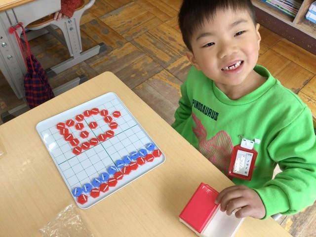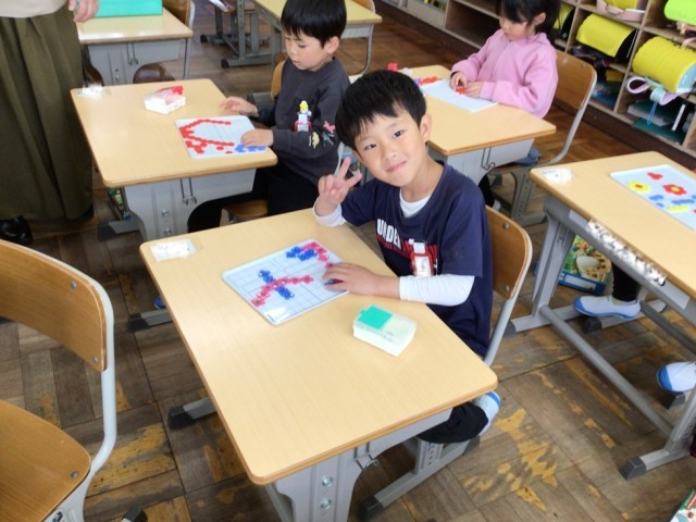 1年生のみんなはおはじきを使って、算数ランドの勉強です。