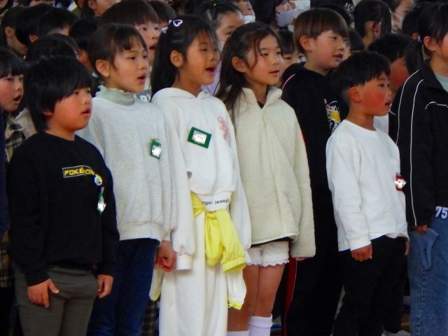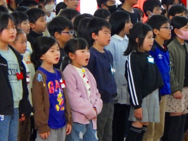 校歌を元気よく歌う広川台小の2年生から6年生。